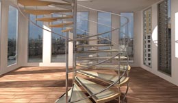 При той же функциональной нагрузке, что и у маршевой лестницы, винтовая лестница занимает значительно меньше места. Кроме того она придает вашему дому оригинальный и модный вид.